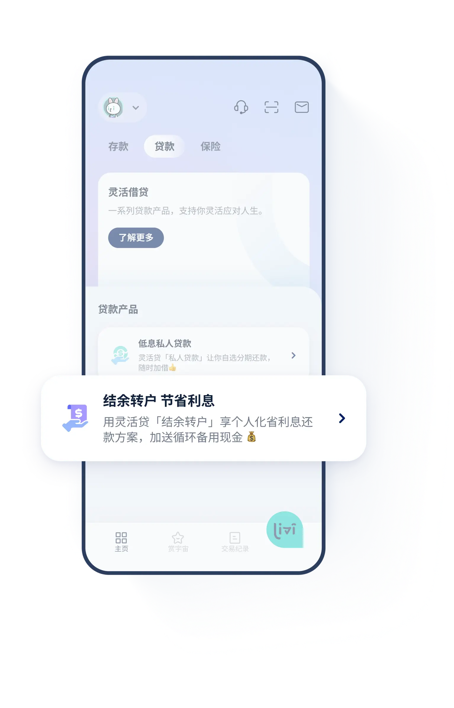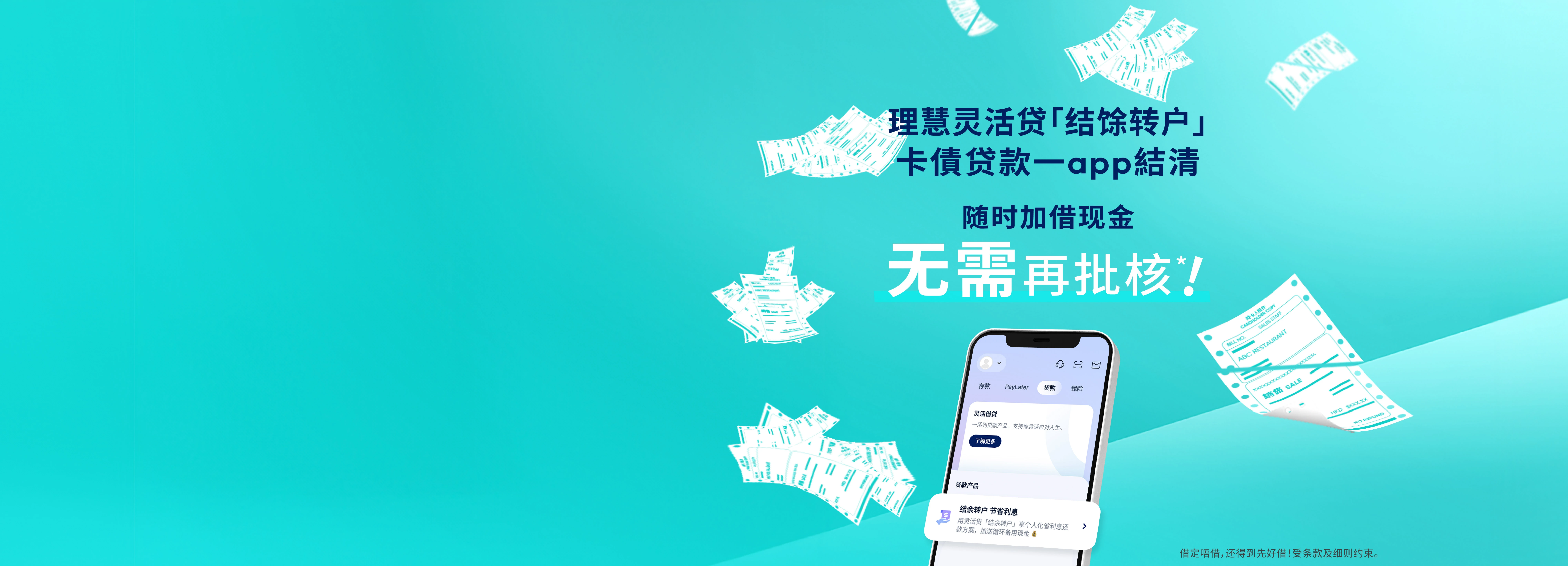 请在livi 理慧银行网站或livi 理慧银行 app中参阅理慧灵活贷「结余转户」及理慧灵活贷「私人贷款」的产品资料概要、有关条款及细则及相关备注。