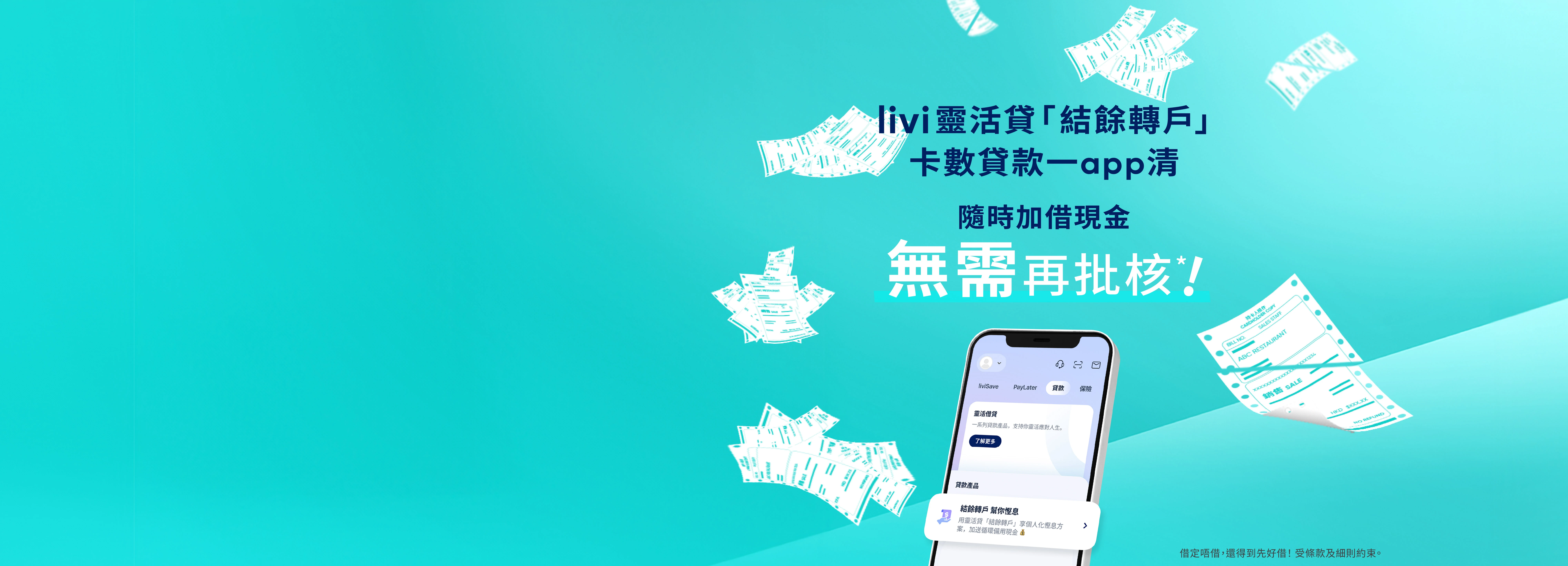 詳情請於livi網站或手機應用程式參閱livi靈活貸「結餘轉戶」及livi靈活貸「私人貸款」之產品資料概要、有關條款及細則及相關備註。